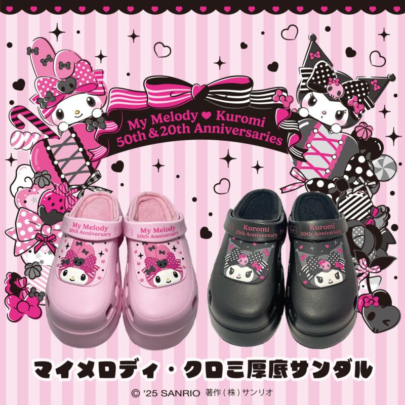 ドン・キホーテ限定で、マイメロディ と クロミ のアニバーサリーをお祝いしたサンダル(全2種)が新登場!