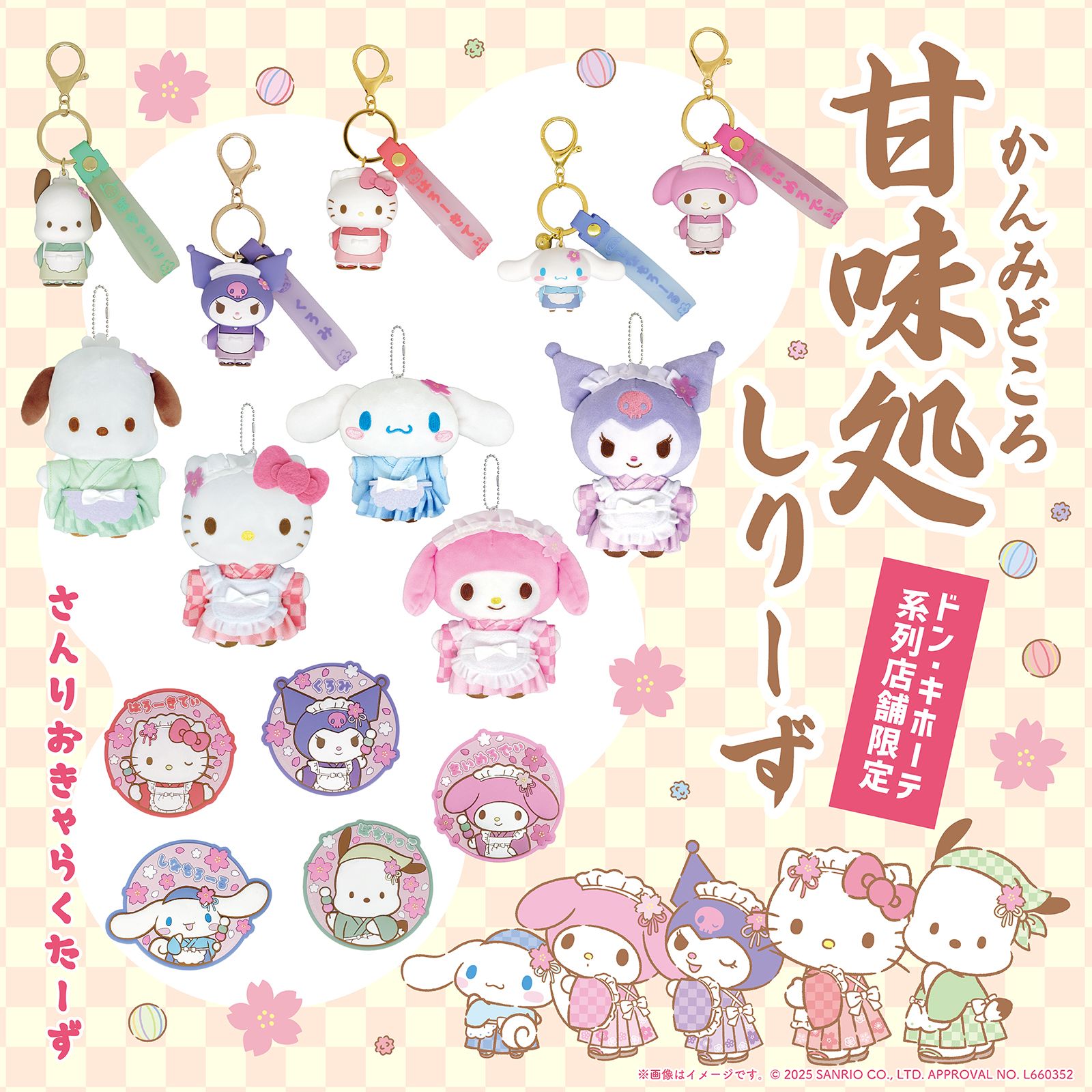 ドン・キホーテ系列店舗限定で、サンリオキャラクターたちが、かわいい和テイストの衣装に身を包んだ「甘味処しりーず」が登場!