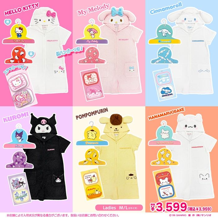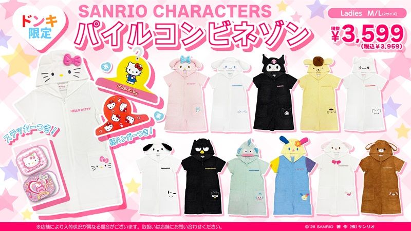 ドンキ『サンリオ コンビネゾン』2026年夏の種類、価格、最新の発売日まとめ!パイル素材、半袖パーカタイプで部屋着にもオススメ!レディース、キッズも!