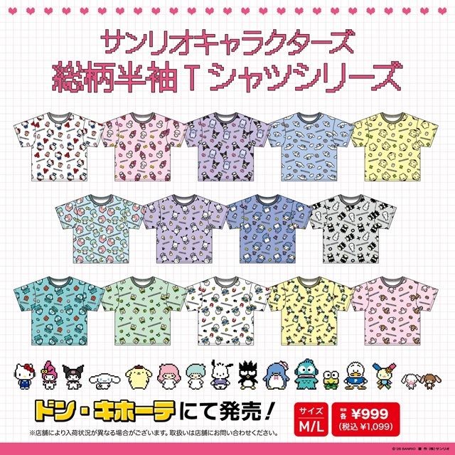 ドン・キホーテ限定で、サンリオキャラクターズの総柄Tシャツ・ショートパンツが登場!