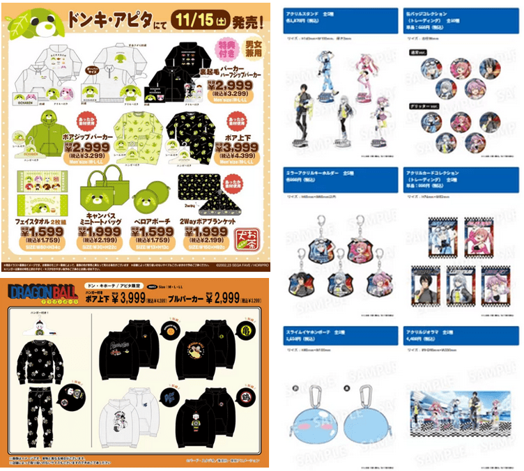 お茶犬、ドラゴンボール、転生したらスライムだった件(転スラ)などのコラボが販売。