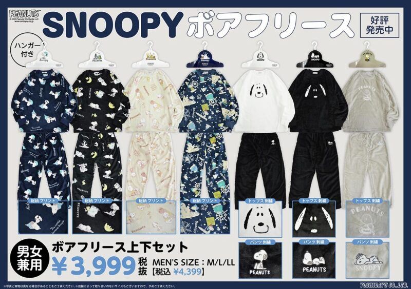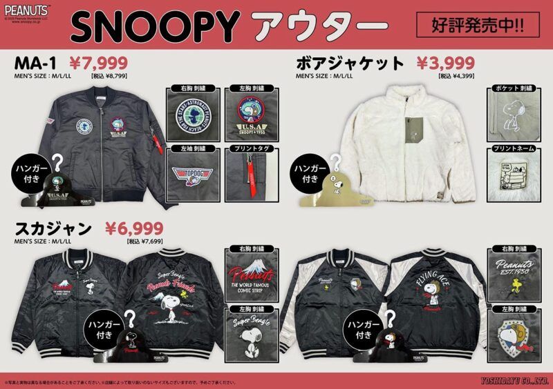 ドンキ『スヌーピー(PEANUTS)』コラボ!冬のアパレルが2025年10月より新発売!ボアフリース上下セット、MA-1、スカジャン、ボアジャケットも!
