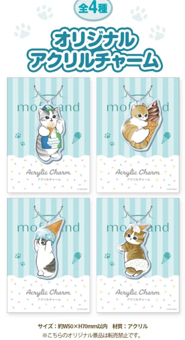 - 【店頭でもらえるおまけ】対象のアイスを2個同時に買うと「mofusand」オリジナルアクリルチャームが1個もらえる!
