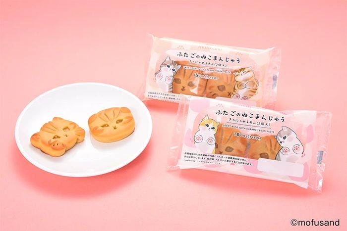 2種類のにゃんこのかわいい顔をかたどったおまんじゅうです。中身の餡はキャラメル味の「きゃにゃめるあん」です。パッケージは「mofusand」とコラボレーションしたデザインで、全2種類です。