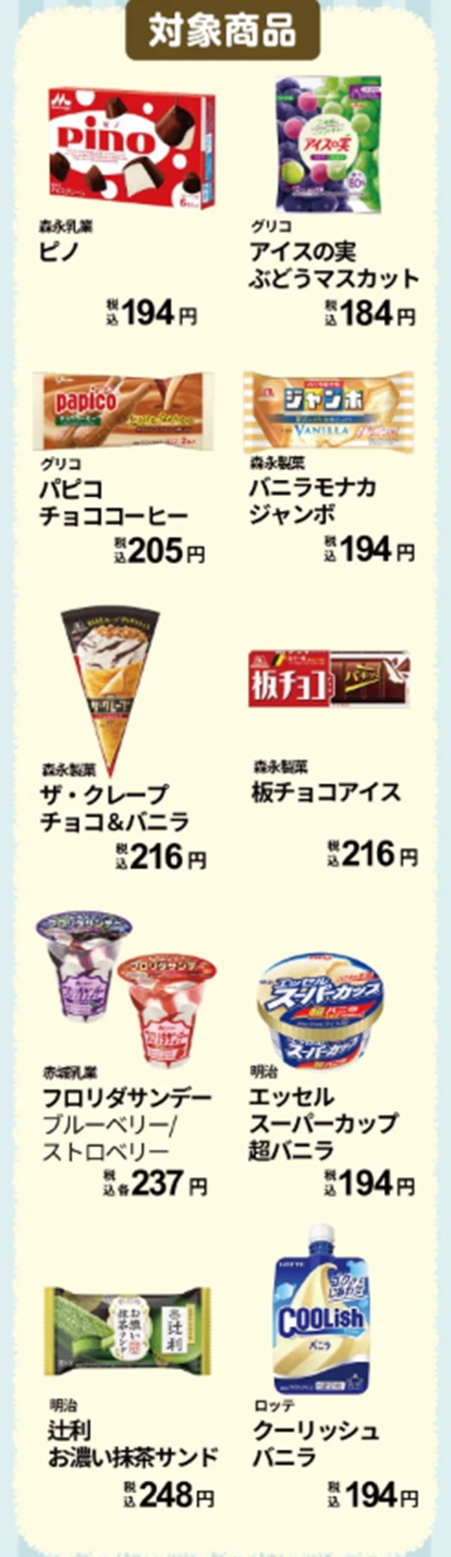≪対象商品≫アイス各種