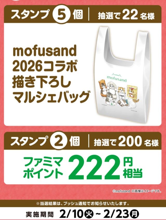 - ファミリーマート限定「mofusand」オリジナルグッズなど豪華景品が合計222名に当たる「ファミペイ」スタンプ企画を開催!