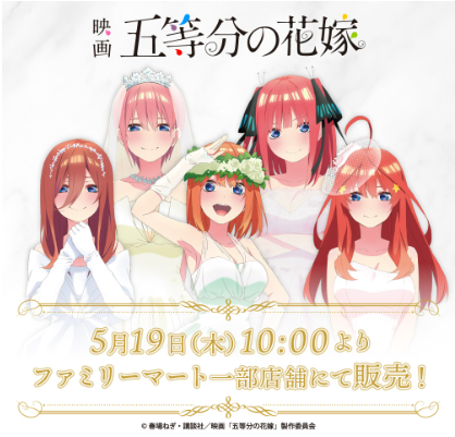 ファミリーマートでは2022年5月19日(木)~映画「五等分の花嫁」とコラボしたオリジナルグッズを店頭で販売!
