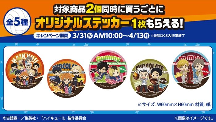 対象商品購入で、「ハイキュー!!」人気キャラクターのオリジナルグッズがもらえる!