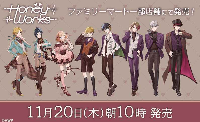 ファミリーマートでは、2025年11月20日(木)10時より『HoneyWorks トレーディングアクリルスタンド』『HoneyWorks トレーディングハート型缶バッジ』を店頭で販売します!