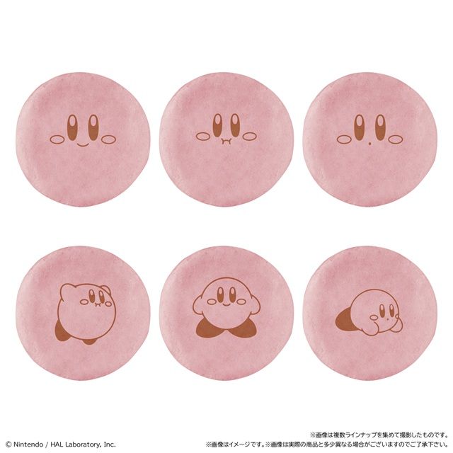 ピンク色のもちもちな生地の今川焼きの表面に、カービィのいろいろな表情やポーズの焼き印が押されています!カービィがまんまる焼きになったようなフェイスデザインや、まんまる焼きの上にカービィが乗っているようなデザインの焼き印が全6種。