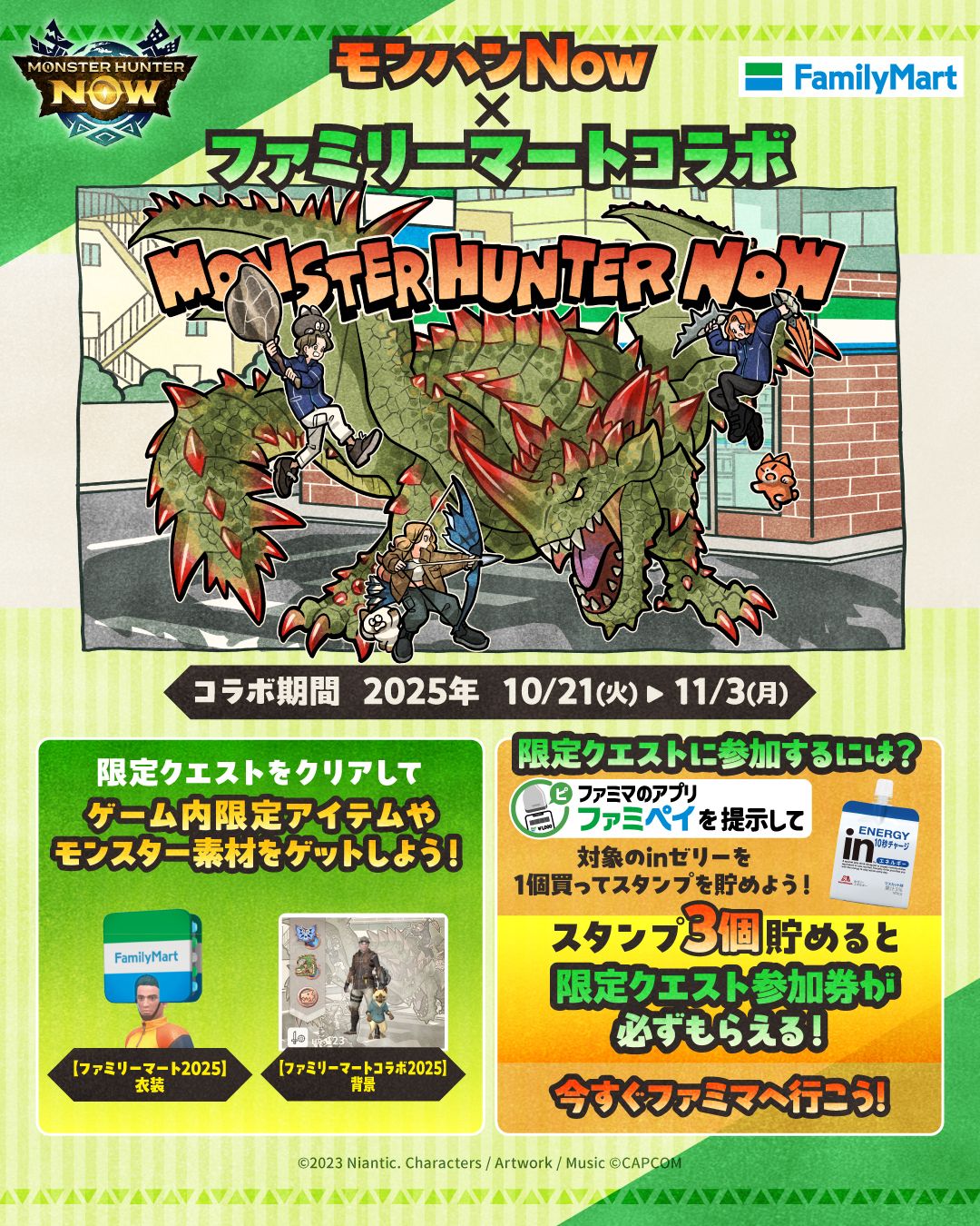 ファミリーマートでは、位置情報ゲームアプリ『モンスターハンター Now(ナウ)』とのコラボレーションキャンペーンを2025年10月21日(火)から開催します!