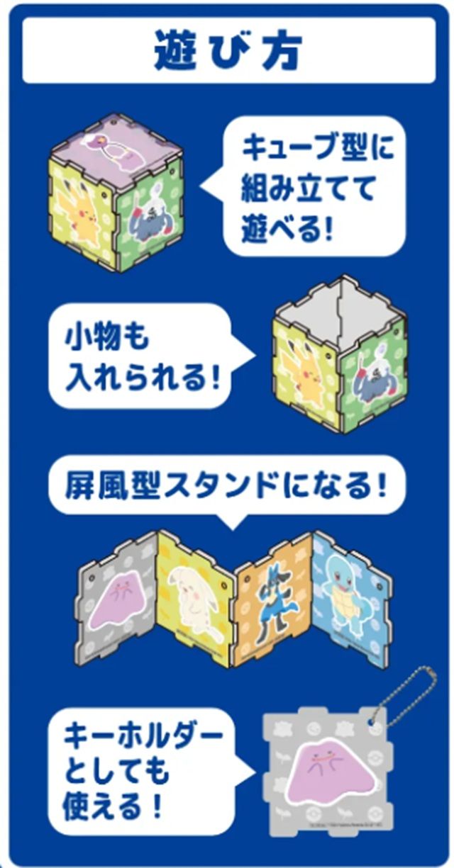 期間中、対象商品を2品ご購入ごとに、ポケモンたちがデザインされたオリジナルのアクリルパズルキーホルダーがもらえます。ピース同士を連結できる仕様で、キーホルダーとしてはもちろん、組み立てて立体的に飾ることもできます。