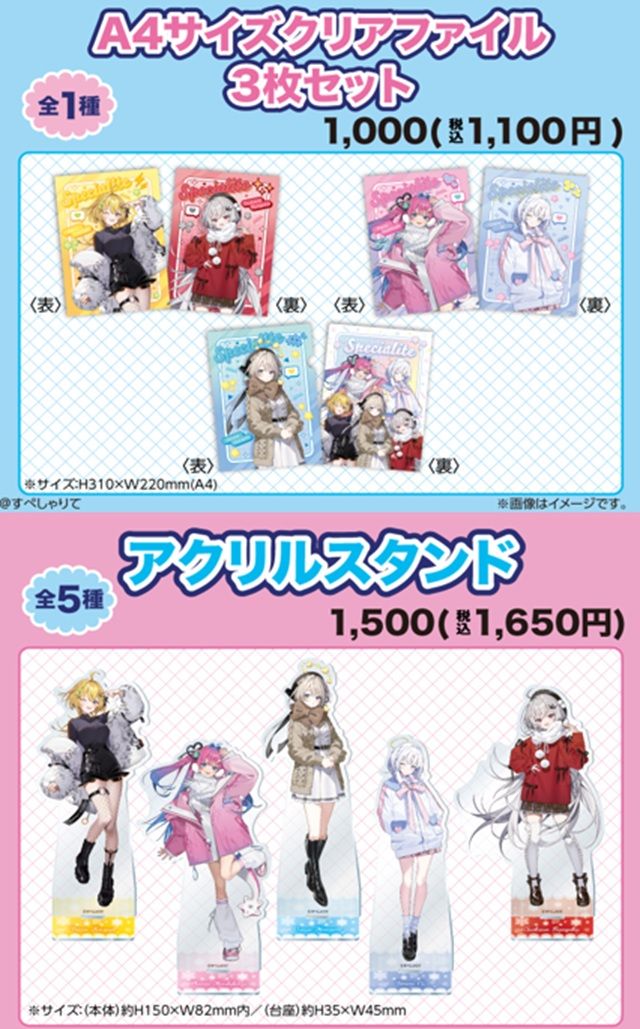 ゲーマーVTuber事務所「すぺしゃりて」より、オリジナルイラストを使用したA4サイズクリアファイル3枚セットが登場です。
