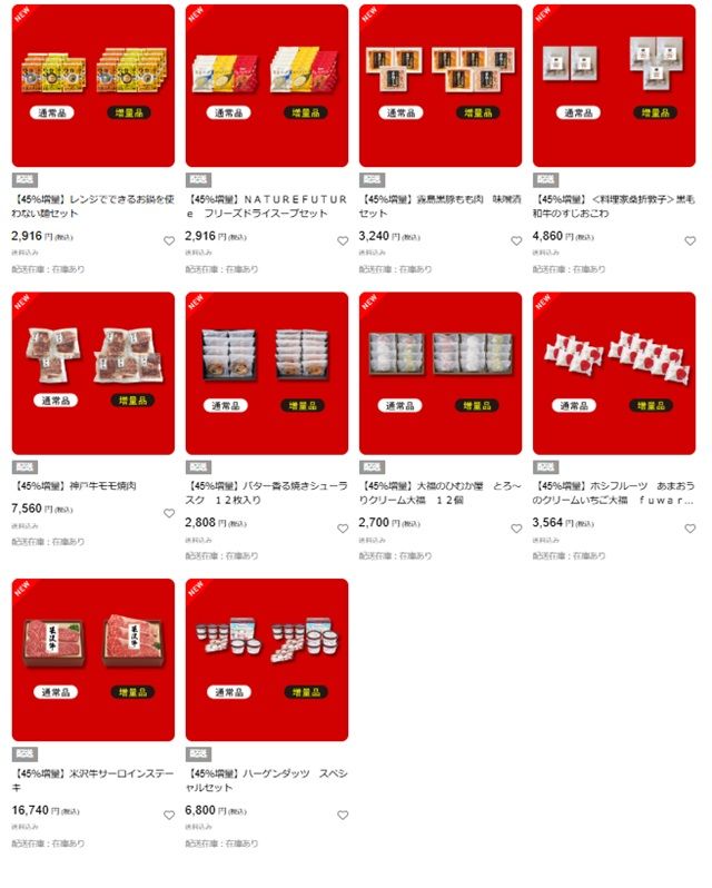 さまざまな人気商品を値段を変えずに増量して、とってもお得!