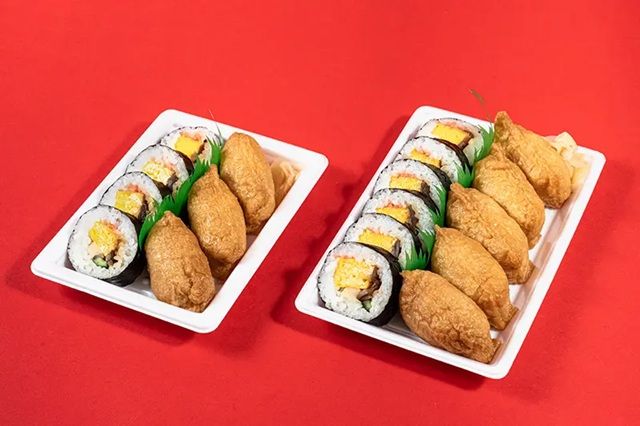 6種類の具材が楽しめるこだわりの巻寿司と、コク深く仕上げたいなり寿司を組み合わせたセットです。通常はいなり寿司3個、巻寿司4巻のところ、いなり寿司5個・巻寿司6巻に増量し、シェアもできるボリューム感たっぷりの一品です。