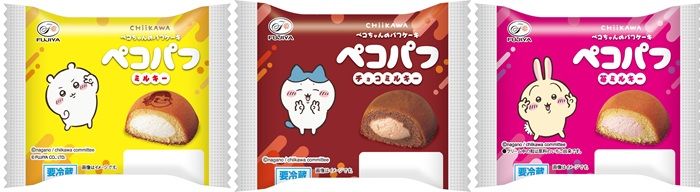 ふわふわの生地に、ミルキー風味のクリームを詰めた不二家の人気商品「ペコパフ」が「ちいかわ」とコラボ。フレーバーは全3種です。