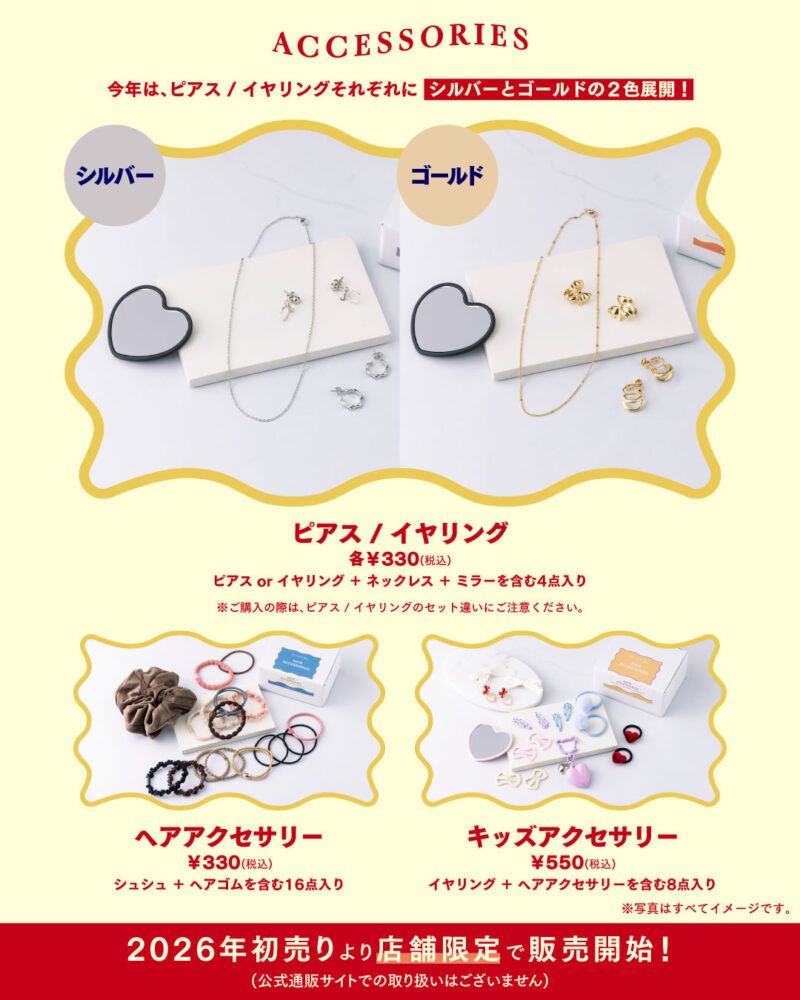 | 2024年の初売りより | イヤリング、ピアス、ヘアアクセ、ネイルの4種類 | |