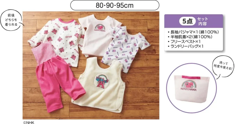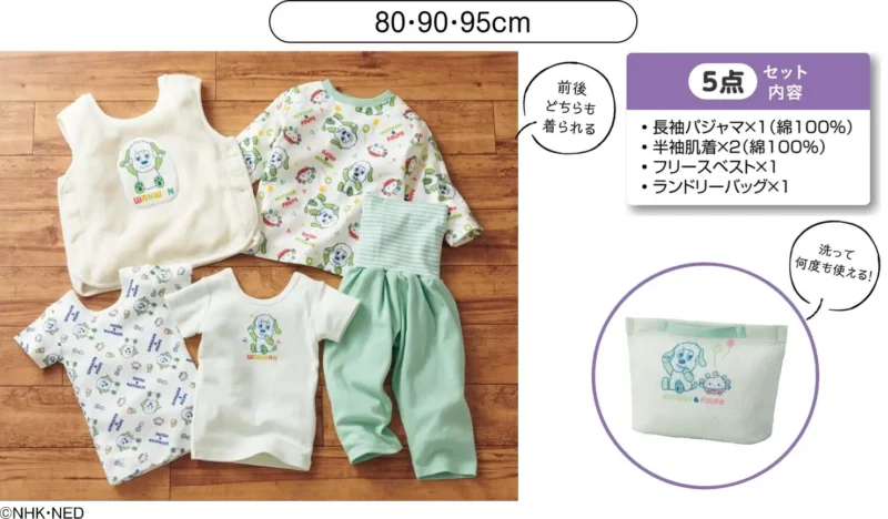 | セット内容 | ・ 巾着 ×1・ トレーナー ×1・ 長袖Tシャツ ×1・ いつものパンツ ×1・ ロングパンツ ×1 |