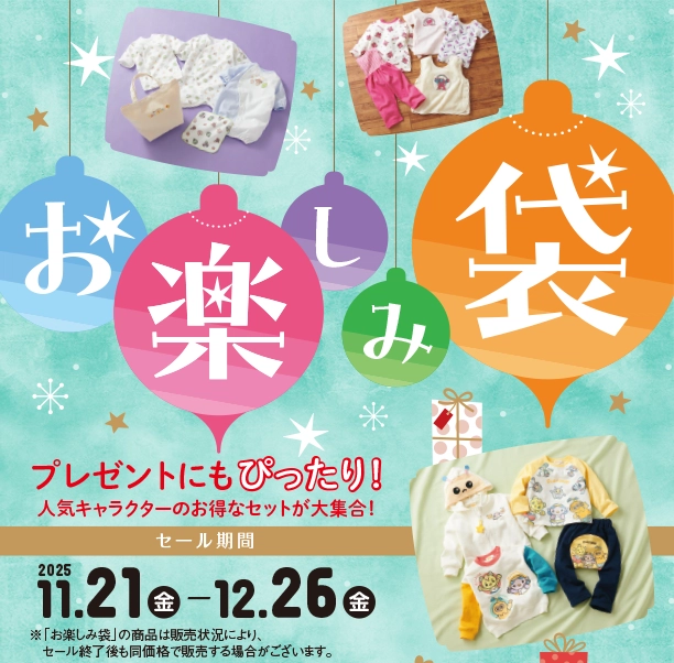 | 2025年 | 12月1日(日)から12月27日(金)まで、お楽しみ袋を販売! 28日(土)から新年の企画も実施 | |