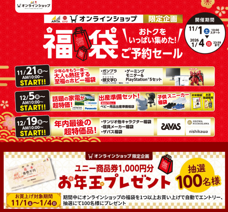 【アピタ・ピアゴ】2026年の福袋 発売日、販売方法、発売場所、通販開始時間