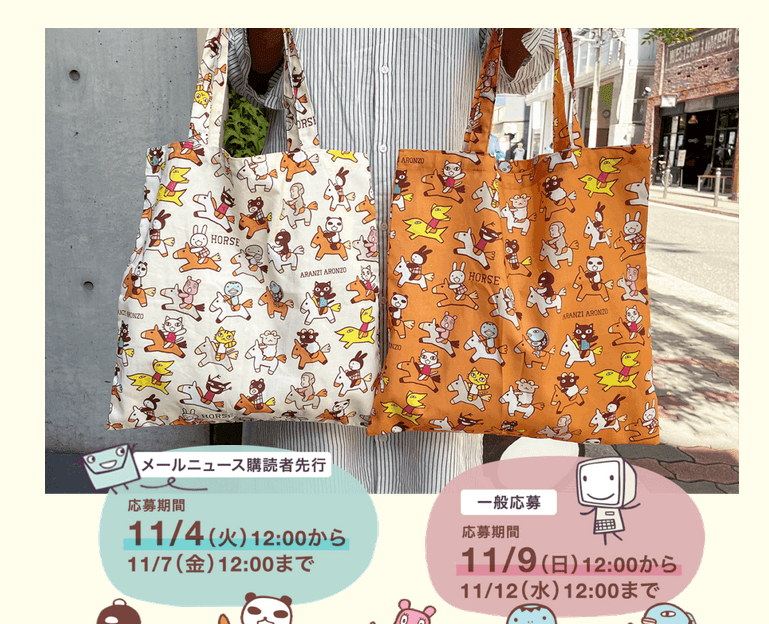 | 公式サイト | 店舗での販売予定 アランジアロンゾ本店とソラマチ店、札幌店の初売りと「名古屋エスカ特設会場(仮称)」で販売する予定です。 「大阪本店」 60個 「ソラマチ店」 30個 「札幌店」 30個 「名古屋エスカ」 30個 当選メール メールニュースご購読者 先行応募 当選すると、11/9(日)23時までに当選メールが届く! 一般応募 当選すると、11/13(木)23時までに当選メールが届く! ご購入手続き メールニュースご購読者 先行応募 11/12(水)お昼12時までにご注文を完了させてください。 一般応募 11/17(月)お昼12時までにご注文を完了させてください。 |