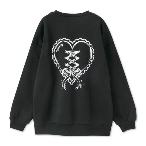 フロントの可愛いお顔の回りにサテンリボンが施されたトレーナー。