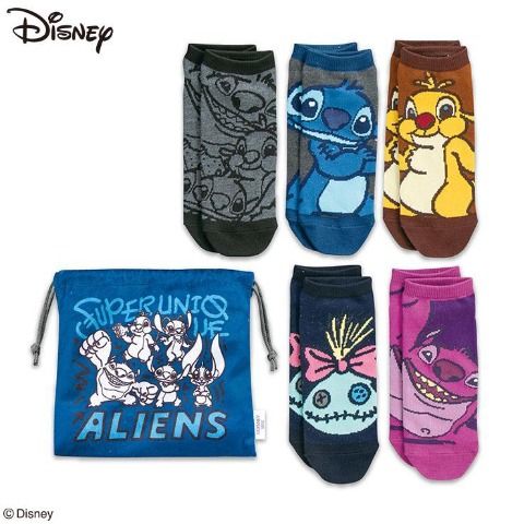 スティッチデザインの5足組巾着入りソックスが登場♪