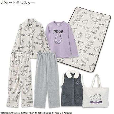 TVアニメポケットモンスターのイッカネズミのセット物です。これからの季節にぴったりなあったかフリースパジャマや、ルームベスト、ブランケットに加え、長いシーズン着られてうれしい中肉素材の裏毛上下セットがバッグに入った豪華なセット物になります。