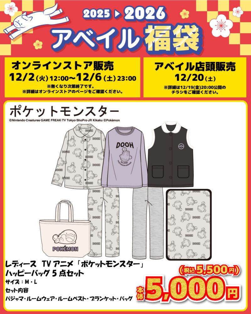 #アベイル より12/21(土)~『#ポケットモンスター』のハッピーバッグが発売!