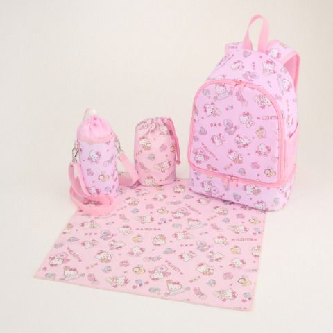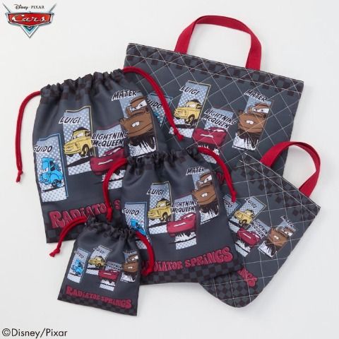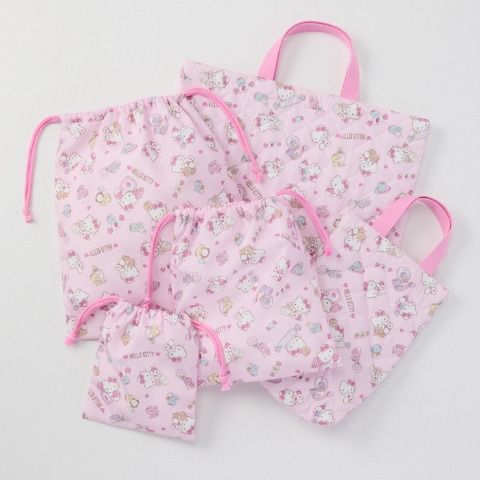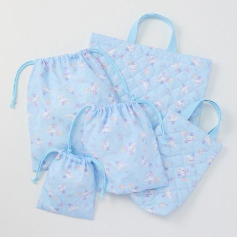 マルチバッグ、シューズケース、ペンケース、ランチクロス、手提げ巾着、5枚組ミニタオルのセットです。