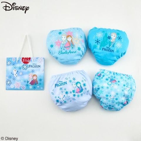 アナ,エルサ,オラフがプリントされているワンポイントと総柄デザインの4枚のショーツがセットになったお得な福袋です♪
