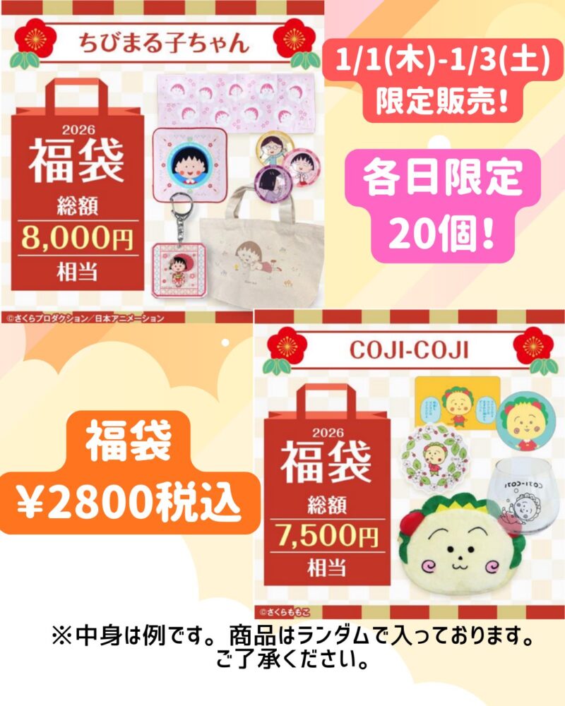 ちびまる子ちゃんランド店頭にて、初売りの1月1日(木・元日)より、数量限定で福袋を販売します!