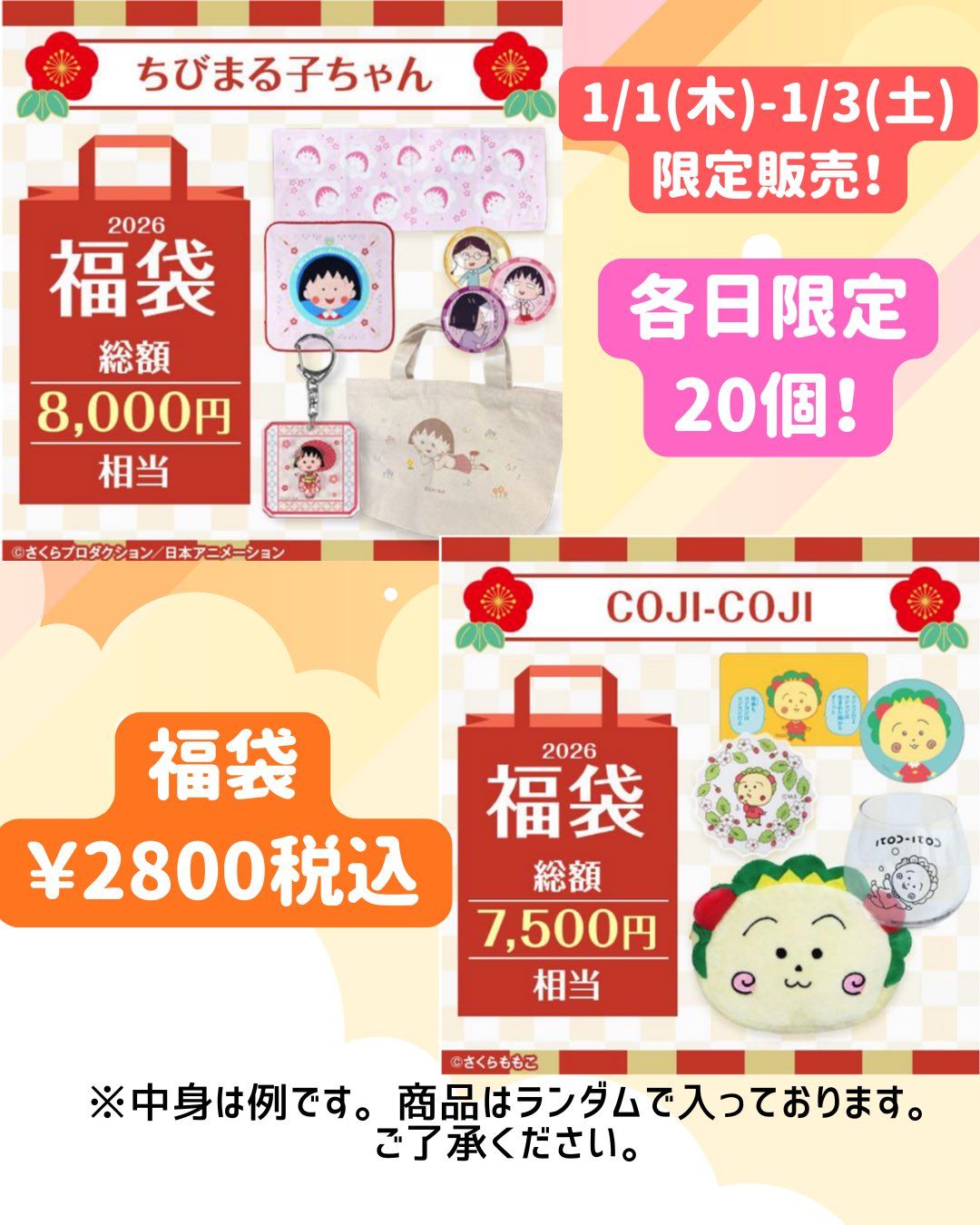 ちびまる子ちゃんランド店頭にて、初売りの1月1日(木・元日)より、数量限定で福袋を販売します!