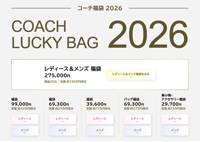 COACH(コーチ)2026年の福袋の中身・口コミ(ネタバレ)