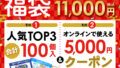 福袋はオリジナルグッズに3,500円分のフードチケットが付いた、大変お得な内容となっています。