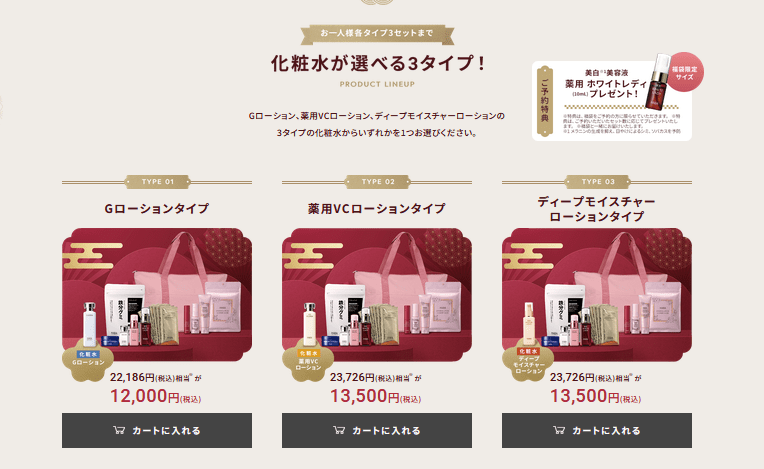 化粧水が選べる3タイプの福袋が販売します!