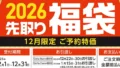 | 2026年 | 一蘭福袋2026 ~松~: 19,000円 一蘭福袋2026 ~竹~: 12,000円 一蘭福袋2026 ~梅~: 9,000円 の3種類がラインナップ | |