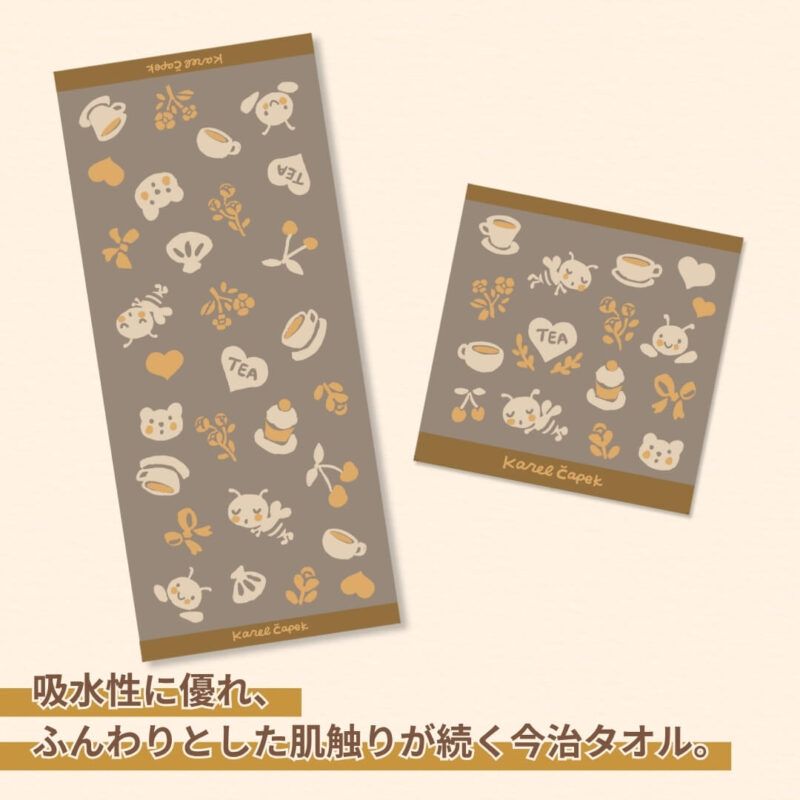 吸水性に優れ、ふんわりとした肌触りが続く今治タオル。今治タオルの品質とカレルチャペックのデザインが一つになった特別なタオルです。
