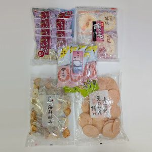 ●内容:無選別えびせん揚げ(200g)×1、海鮮好み(190g)×1、駿河の舞(90g)×1、しろえび小判(13g×8袋)×1、らぁ油えびせん(150g)×1