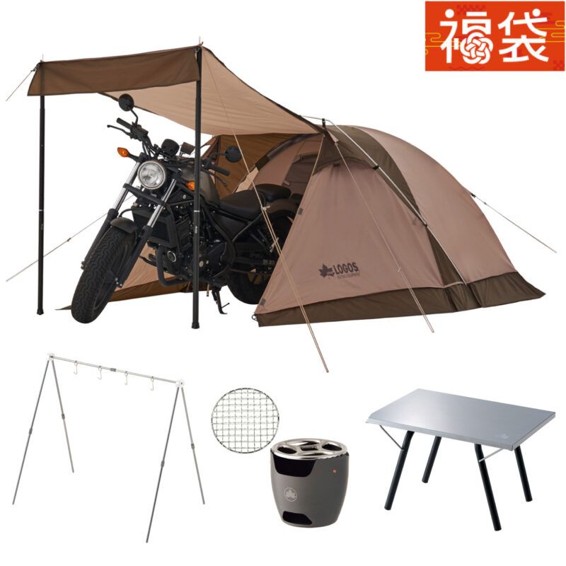 またロゴスショップ限定で、ツーリングに最適な大型前室付きのコンパクトテントを含む「ソロキャンプセット」や、ファミリーキャンプに最適なテントが入ったお得なセットも登場するほか、各店舗オリジナルセットも販売いたします。