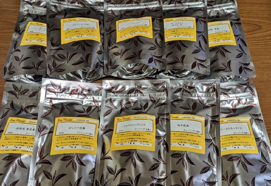 深蒸し煎茶、炭焙煎黒豆麦茶、ミルクティーブレンド、ボンマルシェアールグレイ、ボンマルシェサクランボ、エトワールロゼ、ローストキャラメル、マスカット、はちみつ林檎、柚子紅茶 pic.twitter.com/0FYkph9AHJ