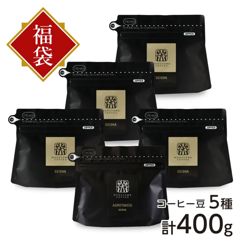 - 福豆袋 アグロタケシ・ゲイシャ&ゲイシャシリーズ (5種 計400g) 価格:12,778円 (税抜き)/13,800.24円(税込み)