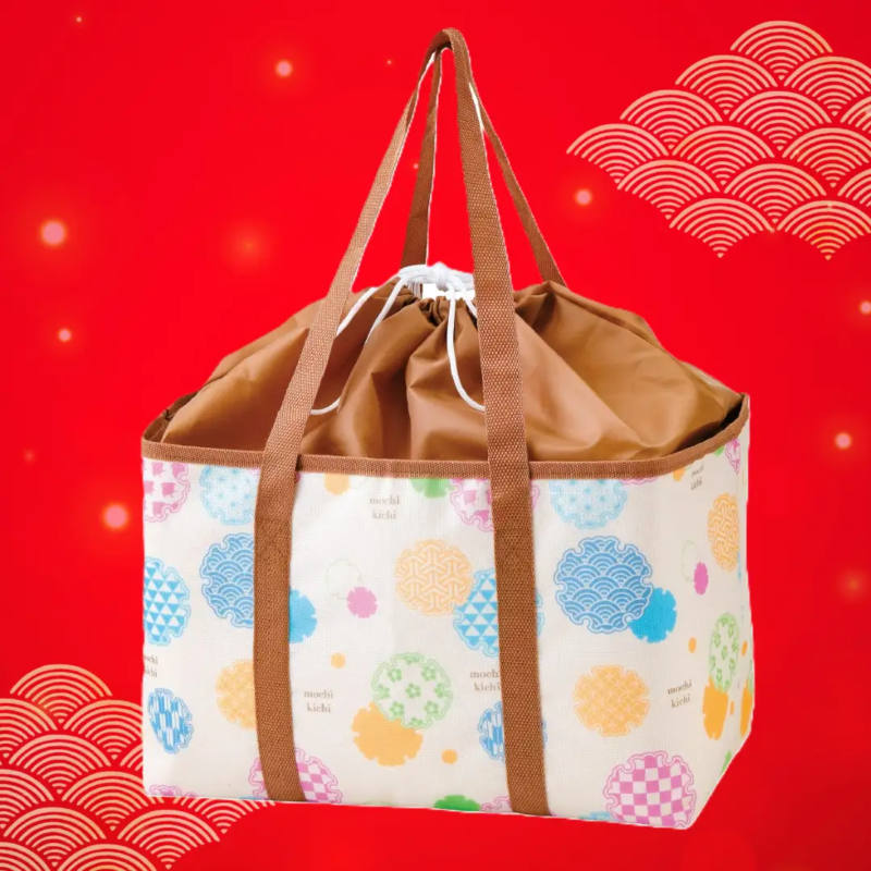 もち吉福袋ゲットしました。今年はシックめのレジカゴバッグ。内側にアルミが貼ってあり保冷仕様。バッグは去年よりお金がかかってそう笑。でも去年の黄色いバッグはかわいくて愛用中。 pic.twitter.com/XZqk6LsGtn