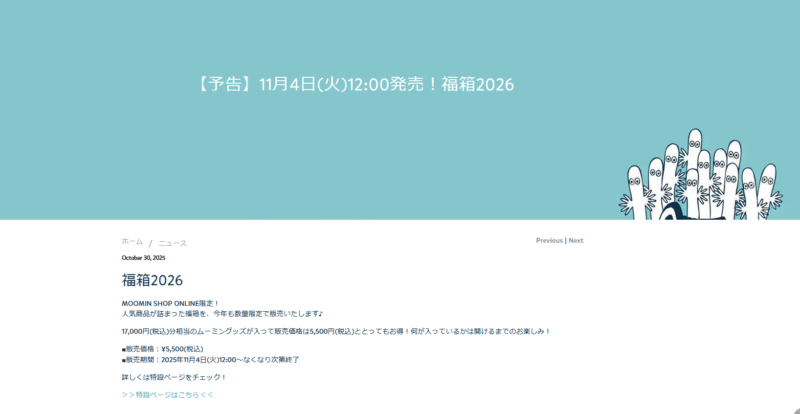 【ムーミンショップ】福袋 最新の発売日、予定、スケジュール