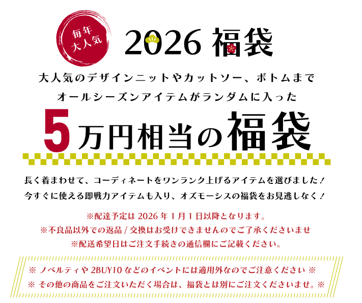 長く着まわせてコーディネートをワンランク上げるアイテムを選んだ、オズモのこだわりいっぱいな福袋をお見逃しなく!