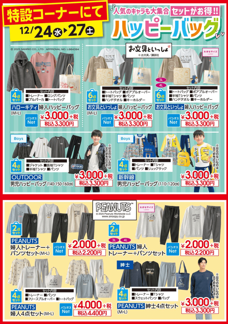 また、12月24日(水)~歳末のハッピーバッグも販売しています。