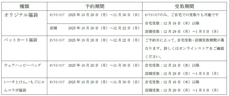 2025年ペテモの福袋の予約はペテモオンラインストアは11月1日より、店頭は11月30日より予約を開始します。