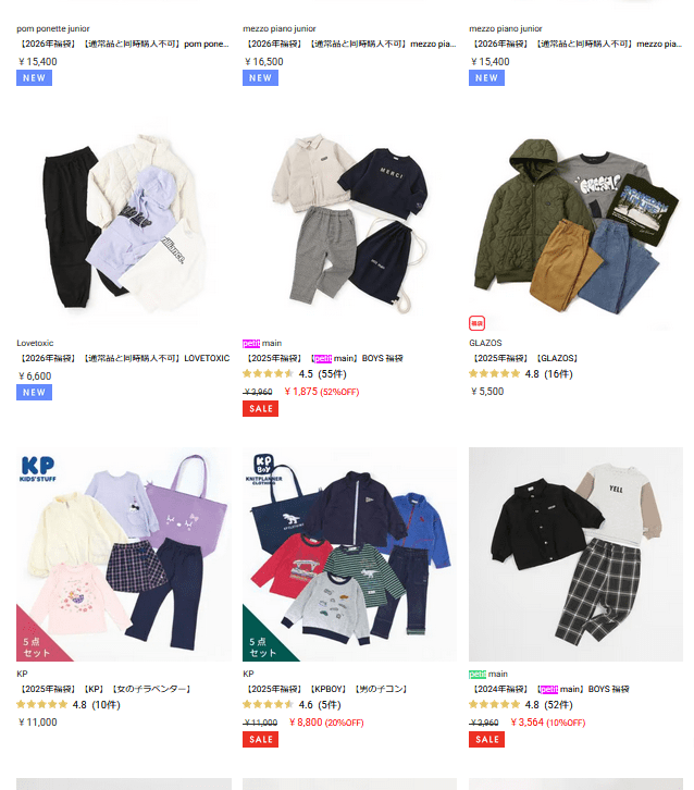 10月1日現在、2025年、2024年の男の子向け福袋は、半額などのセール価格になっています。