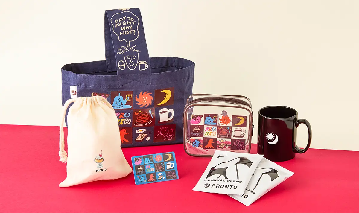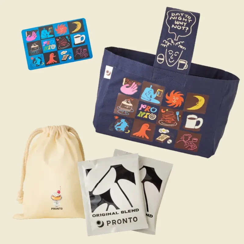 『PRONTO』では、2026年1月1日(木)より「福袋2026」を発売します。『PRONTO』の「ドリップコーヒー オリジナルブレンド」や「オリジナルマグカップ」「オリジナル巾着」の他、人気イラストレーター/アーティストのnorahi(ノラヒ)氏によるオリジナルデザインのトートバッグやクリアポーチ、プロントマネーギフトカードをセットにした福袋です。