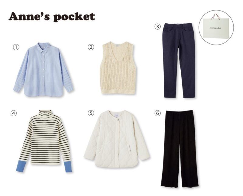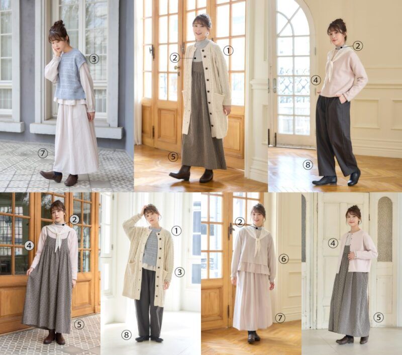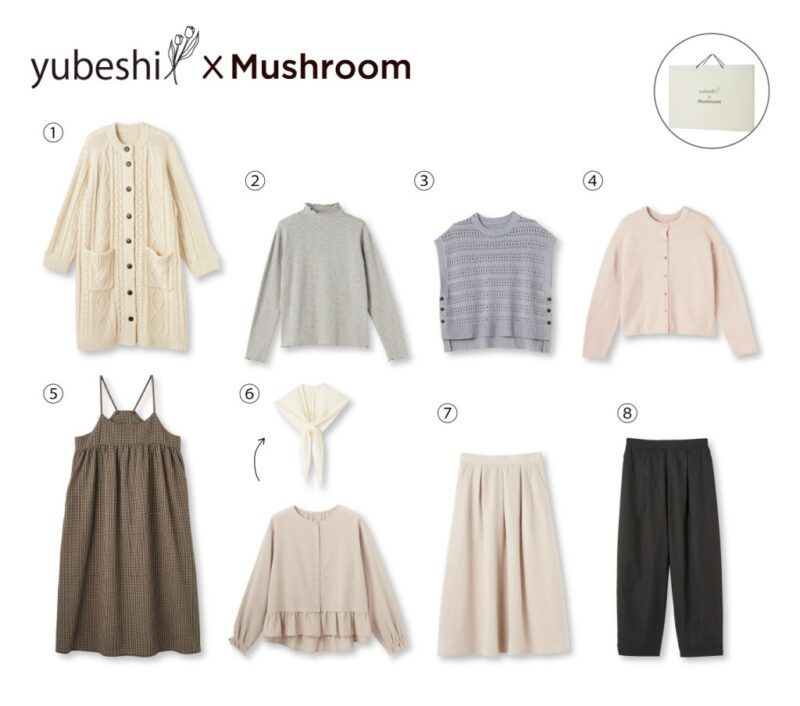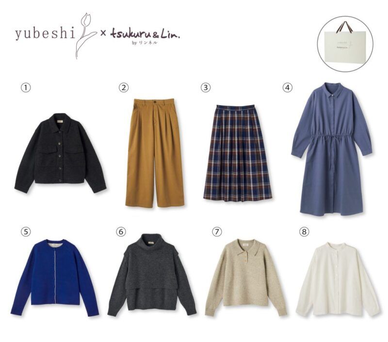 トレンド要素をプラスしたニットやセーターの他、チェック柄のスカートや定番のタックワイドパンツ、ワンピースやジャケットなど、ゆべしさんの「あったらいいな」を詰め込みました。